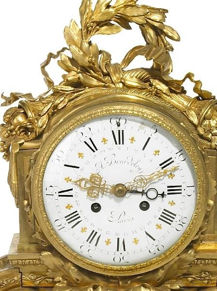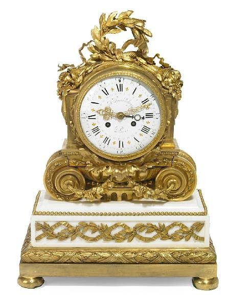 4. Alfred Beurdeley French Louis XVI style gilt bronze and marble mantel clock