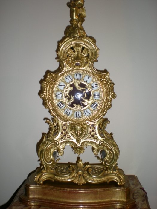 French clock.Louis XV style gilt bronze mounted satine mantle clock circa 1890