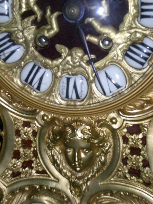 Magnificent Figural Bronze & Marble Table Clock Signed Henri Dasson