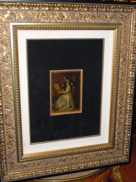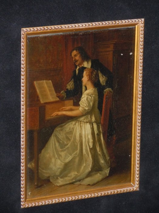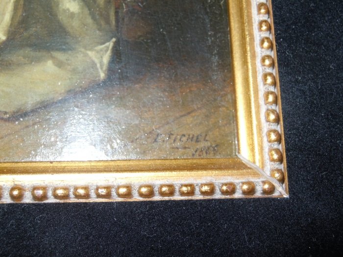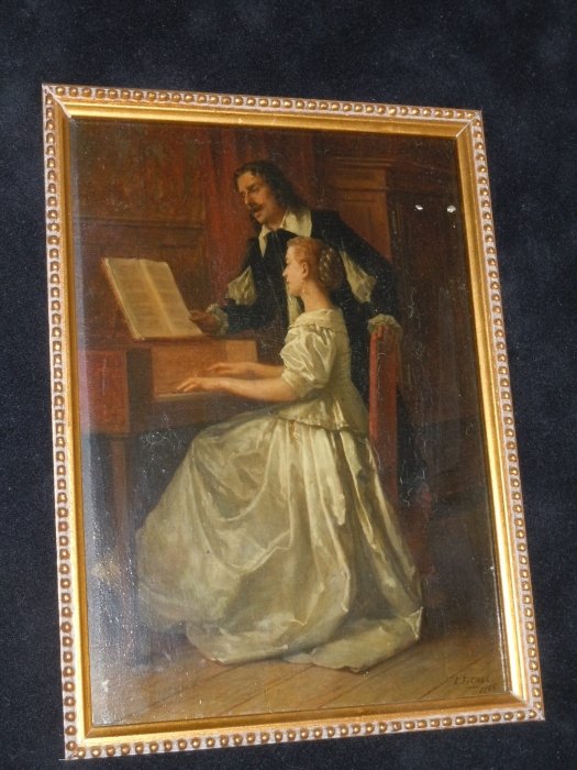 Bebjamin Eugene Fichel, French 1826-1895. Oil on Panel “The Piano Lesson” signed and dated E. Fichel 1866
