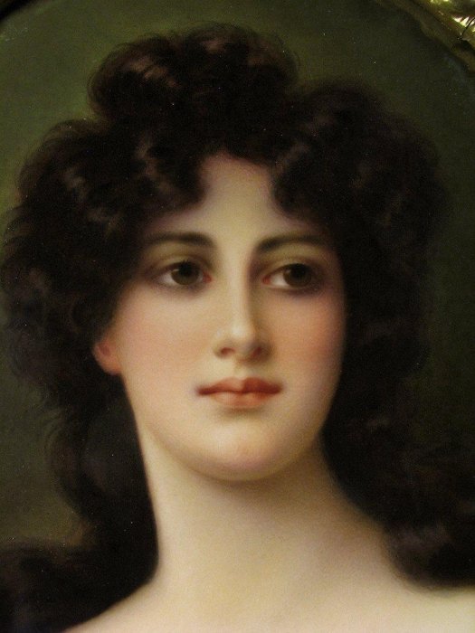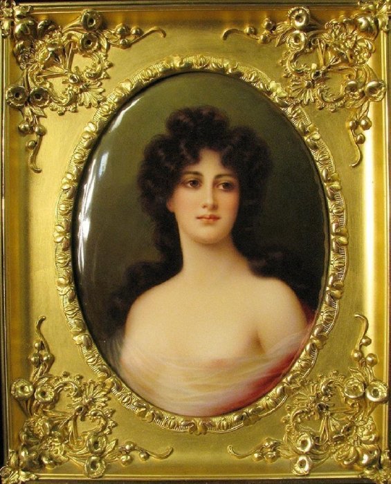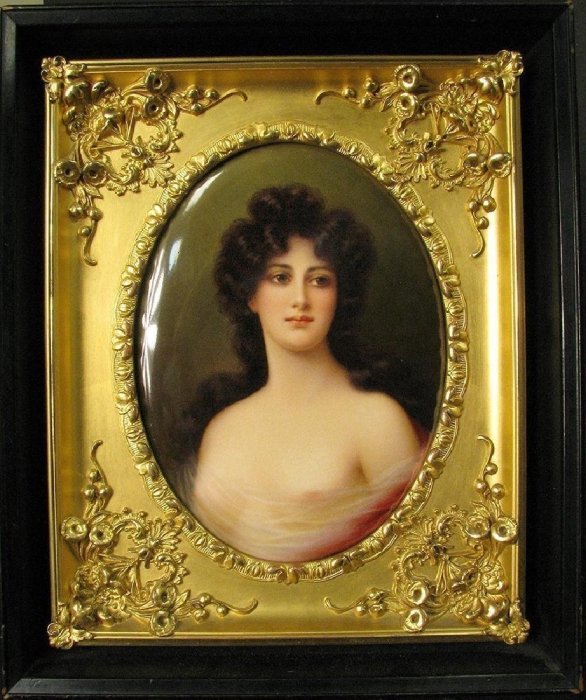 4. Berlin KPM porcelain plaque of a brunette beauty in an original giltwood frame. Circa 1880
