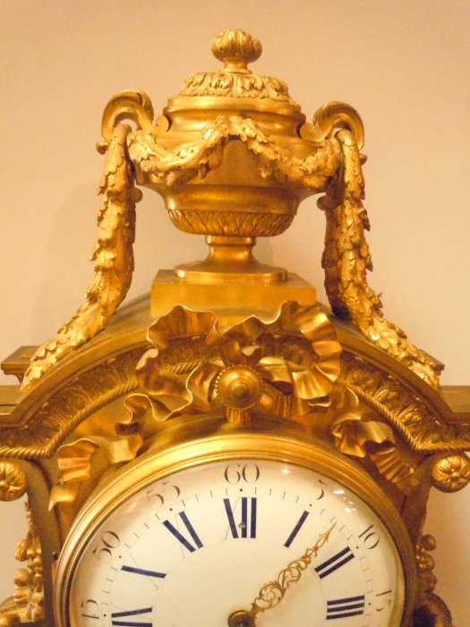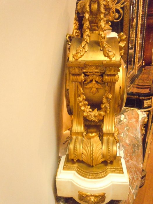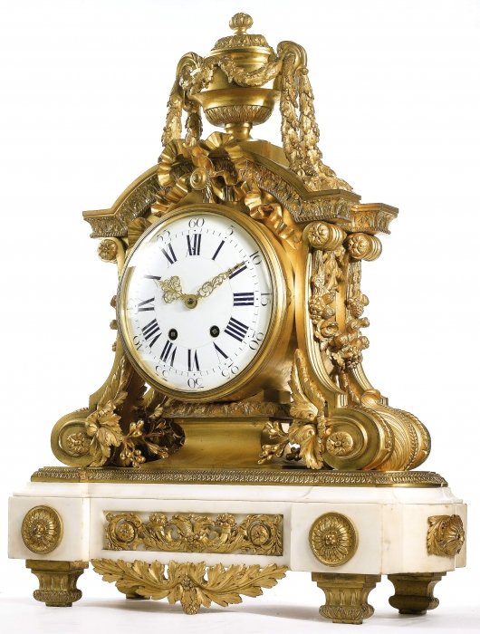 A large Louis XVI style gilt bronze mounted white marble clock, Paris 1890.