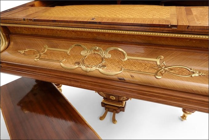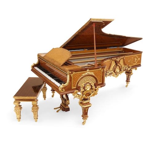 Francois Linke, Exhbition gilt bronze mounted parquetery kingwood and tulipwood grand piano by Erard