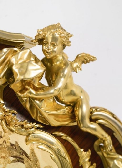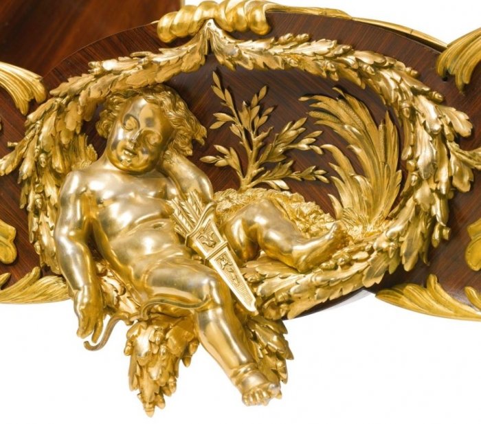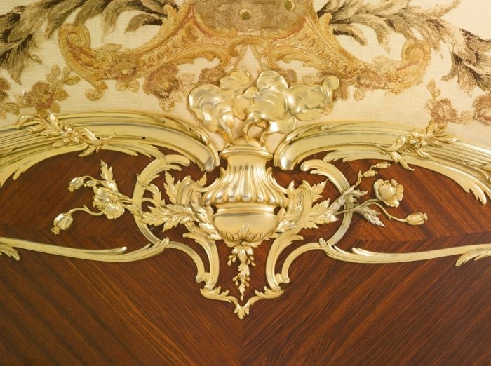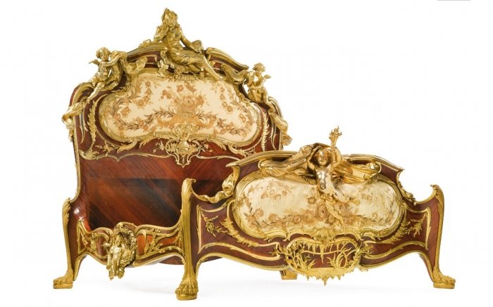 Francois Linke Unique Gilt bronze mounted kingwood, satine and embroidered silk decorated bed, Paris circa 1920