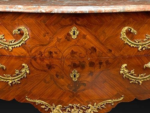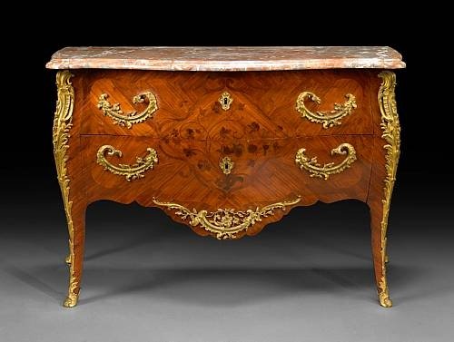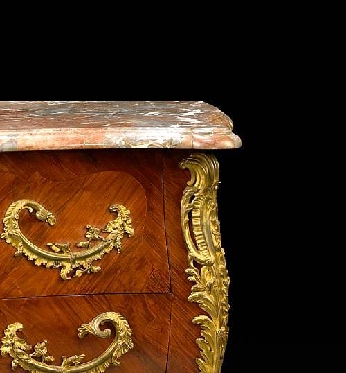 Francois Bayer, French transitional Louis XV/XVI gilt bronze mounted Rosewood & kingwood, marble top commode