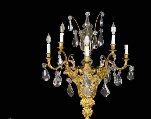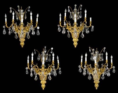 French set of 4 Louis XV style gilt bronze 5-light bras de lumière