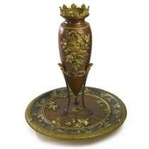 • French two-tone gilding and patinated vase centerpiece a goût-grec Provenance: Paris, Circa 1870
