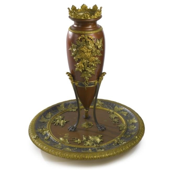 4. French two-tone gilding and patinated vase centerpiece a goût-grec Provenance: Paris, Circa 1870