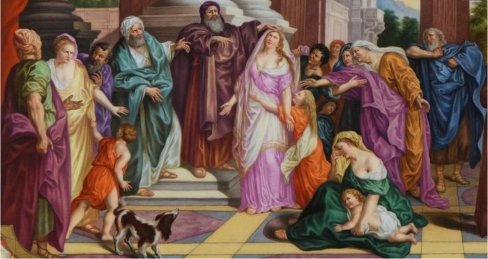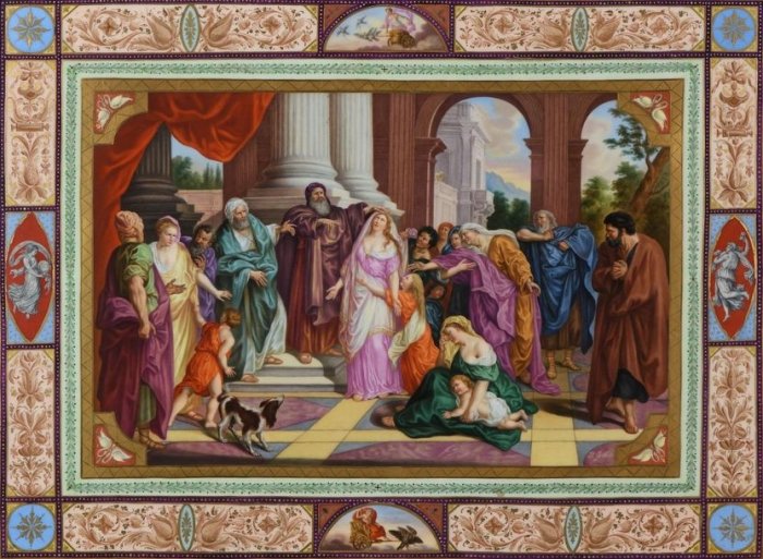KPM painted porcelain mythological plaque of Appolo in his chariot being led by Aurora signed. circa 1900