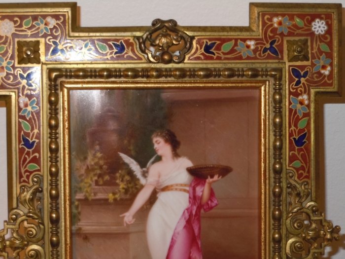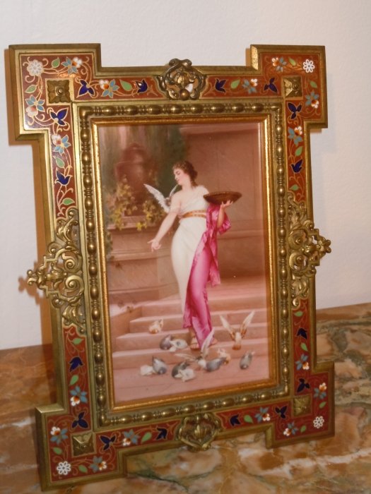 4. KPM Porcelain plaque A lady with Birds, Circa 1890, the Frame Champleve on Bronze
