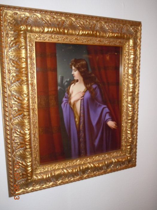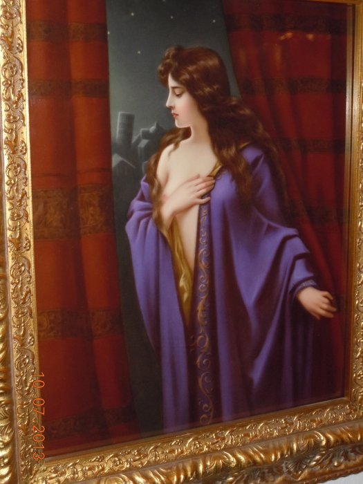 KPM Rectangular porcelain plaque of A beauty in a Purple Neglige, circa 1890, Marq and numbered