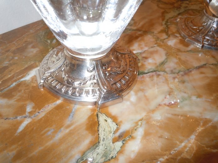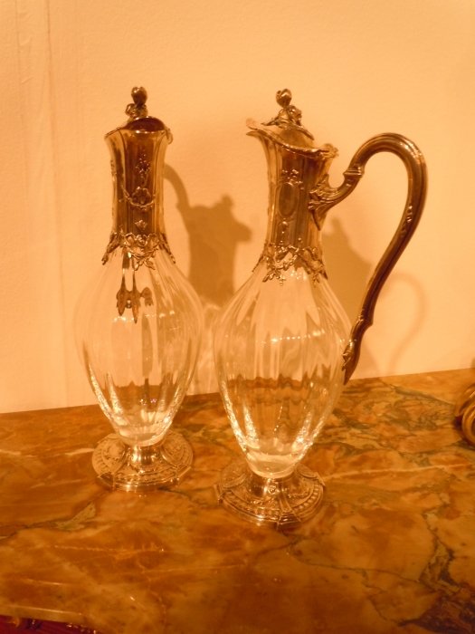 Odiot and Tetard signed Pair of Silver mounted crystal Claret Jugs